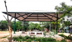 Rain and Sun Shelter has been designed for the convenience of farmers who visit purchase centres (Small Grain Markets) to sell their wheat or paddy. The design has been evolved in steel for easy and economical construction at the site. These shelters are being constructed at hundreds of places in Punjab.