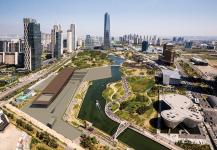 Due to the presence of the artificial lake beside the site and height limit, we made a combination of modern architectural principles and Korean architectural concepts. Such as purity of the form and the materials and harmony with the environment as the main principles of the design of this space.