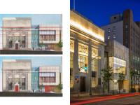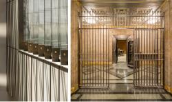 The new mass echoes the stratification and material of the original with a granite service block supporting a limestone clad block that contains the public rooms. The underlying beaux arts planning module of the original building is expressed in the new addition as a bronze framework holding limestone exterior panels and walnut interior panels, a contemporary equivalent to the decorative agenda that permeates the heritage bank.