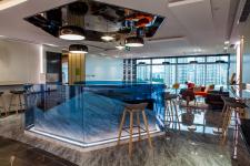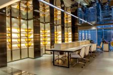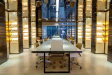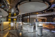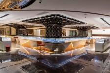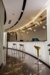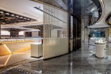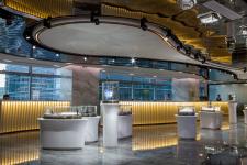 The client expected that the exhibition center can not only meet the basic functional needs, but also change the common impression of a pure office and display space in the past, and provide customers with a relaxed and leisure experience. In order to maximize the liquidity of the space, the layout is centered on the circular exhibition hall, with four counters surrounding the black pillars, which create a strong visual impact. The office has different functions, suitable proportion and ideal circulation. The rest area for customers is located in the centre of the north/south office, which alleviates the serious atmosphere of the whole area. At the front hall, the designer wanted to attract customers’ attention by adding a huge model to the ceiling of the display area, sometimes independent business can be achieved here. The designer hoped that the inherent business image can be changed through spatial senses and office type arrangement.