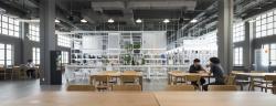 The resource center is not planned as traditional silence libraries. Instead, a large portion of space is designed to encourage conversations in a setting more like a cafe or a co-working space. These work spaces are spread throughout the building mixing with other programs where work and discussion can happen everywhere. The openness of the space brings people together and allows for them to start to interact with a spontaneous conversation. The main circulation cut through the section of the building bringing people to flow pass different facilities to be inspired by what others are doing. Most of the spaces are flexible with movable furniture and adjustable systems to allow for flexible situation and various creative activities to happen. Exhibition nodes are integrated into all spaces - with shelving systems, wall systems, spaces along corridors, corner spaces, central spaces. Fresh ideas are always presented within reach and always surround us for inspiration.