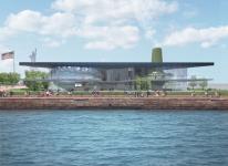 The program is spread into three different floors. The ground floor is open and transparent on all the three sides of the triangle. The Project proposes to create a public plaza to welcome visitors as they arrive to the Island by boat. The main entrance will be in the corner facing this new public square. The reception and an information point, a café with unique views of Manhattan, a shop and a library will complete the distribution of this floor. On the first and second floor, the program will include different exhibition spaces and an auditorium. The rooftop will be open to the public and will be an important part of the building with impressive views of the Statue of Liberty , Manhattan and New Jersey.