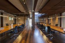 As the idea of integration permeates the entire project, it was necessary also to think about protection of privacy and peacefulness for work, whereby acoustic clouds were adopted in the production rooms and in the main meeting room, in addition to acoustic doors.
