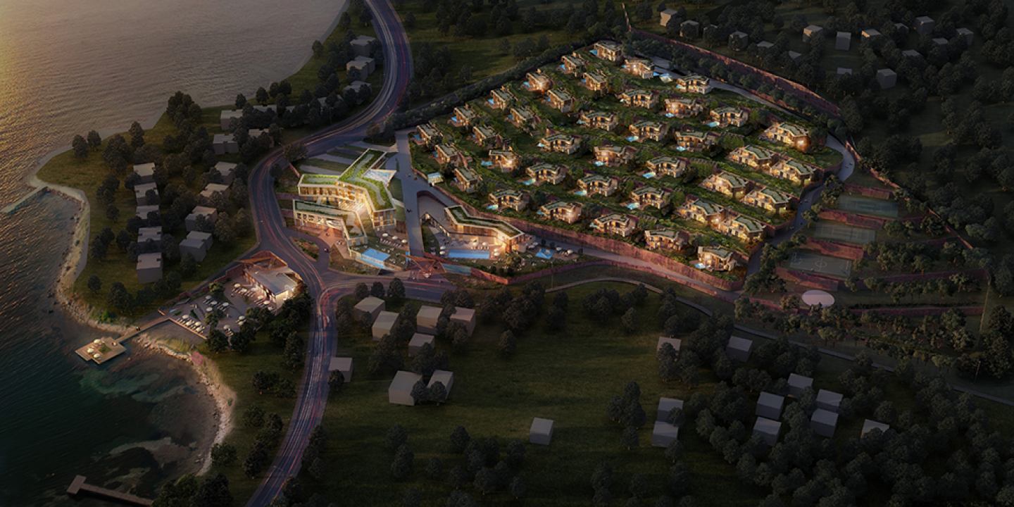 The project is consisted of 43 seperate villas, 36 flats and social houses such as beach club, restaurant, swimming pool, sports facility and sales units.