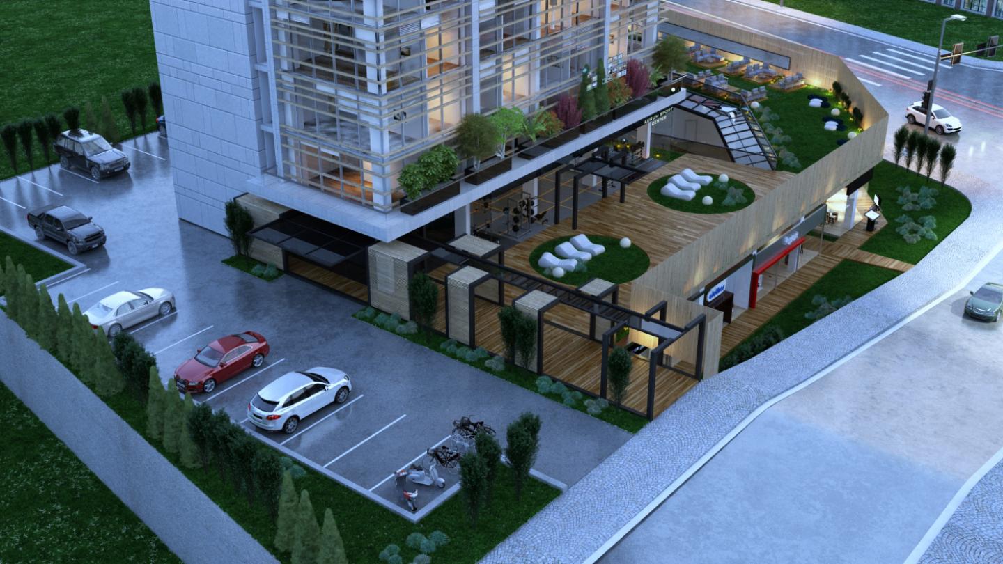 The design of the facade was changed in the roof, allowing it to be perceived from the outside as well. The green zone was mainly used on the roof to minimize the effect of disconnection from the soil. Due to the fact that building users are made up of young people, a roof bar designed for entertainment needs.