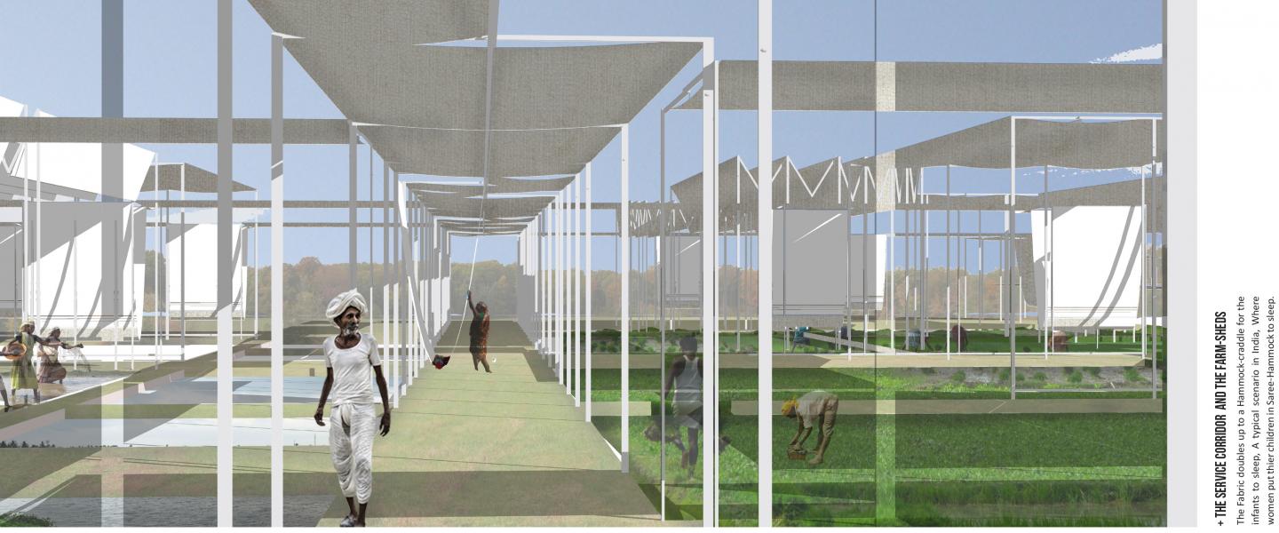 Tent-To-Farm is an approach of creating shade and at the same time channeling excess rain water to create balance and thus mimic the character of a functioning ecosystem. Deployable Tents create temporary or more permanent solutions to trap water and shade crops during high summer. Thus creating natural osmosis of energy transfer.