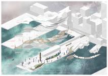 The project includes a research-based process with numerous cultural references, through a series of conceptual and expressive illustrations, aiming to address the ever expanding multicultural society in simplicity of experience. A museum contributed to the development of Auckland through time, composes a hierarchy of spaces, each with its own articulation, pivoted around a central space, adopting the essence of a Wharenui model. The pillars reaching high, spanning the land, sea and sky, are in tension with the building spaces, elevating them off the ground, further enhancing the public realm. The overall proposition preserves the freedom of the wharf’s tip and creates points of contacts with water along the wharf.