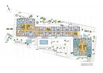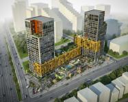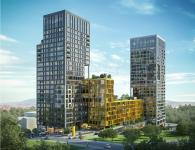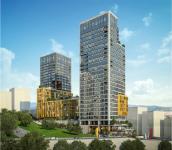Fikirtepe is located on the Anatolian side of Istanbul, an abutting district of Kadıköy. This project is one part in a larger urban transformation initiative. Critical to this process was the integration of design methodologies which allow for community building and sustainability for an ever-budding urban population. Projects in pursuit of urban renewal often ignore their spatial and social impacts. It was this geological reality that inspired an alternative way of conceiving the EvinPark Platin Residence. This difference is seen most plainly in the positioning of the three buildings. Between two towers lay one long tower propped on its back in a bridge-like formation. The middle horizontal leaning block has an attention grabbing design and bold color scheme. Instead of the block’s edge running parallel to the main road, the structure is built upon a 30 degree angle. Thus, taking advantage of Istanbul’s historic costal view that overlooks the beautiful Princess Islands. The use of the building’s base as a center of commerce gave way to forming open air terraces on different levels. The building configuration not only lends itself well for an engaging commercial center, but it also created additional public space. Rather than being a “gated off community” this project seeks to offer an alternative mode of community redevelopment that references the local environment and utilizes sustainable materials and methods to create both long-lasting social and physical infrastructure.