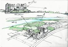The 3s FIRUZE HOUSING SALES OFFICE, is located in the Avcılar district of Istanbul. The land is in an industrial area that has lost its use over time. Previously it was a combination of independent workshops and small industrial plants. The steel gable roof structural formation has become a source of great inspiration for the construction process. This design strategy leaves traces of industrialism throughout the building's mass, interior, and facade that was imbedded in the memory of the region.