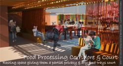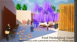 Functionally the project has a big cycle ( food production line ), over all it has five main zones; food processing, food packaging, market, restaurant, and project base services zone, they all relate to each other. The project has two main users; farmers, and non-farmers, it aims to create a life for both users as producers (as farmers) and consumers (as non-farmers).