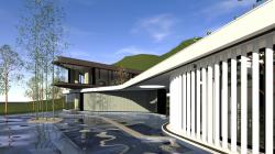 The gallery is linked with the route between guest room, pool and hall. After the events are finished, every space can obtain its own privacy. The second floor is designed by the idea of “float”, it expresses geometric shape. Two floors are connected by large atrium space indoor to challenge the regular outlook and closed floors of modern architecture.