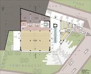 3 courtyards were designed. First, its the top north of the site. Here, the main worship place and the entrance to the ruined floor are provided. There are fountains and seating areas. The semi-open courtyard, which was designed as the last community place, could also be used as a place of worship on busy days. The second is the lower court where the minaret, the decorative pool and the ablutions are located. Direct entrance to the lower floor is provided here. The third is the courtyard where the Quran course is opened.
