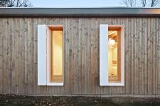 To avoid an excessively harsh result, gutters and shutters window were detailed as a construction decorum.