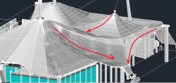? This type of pavilion construction, offers multiple development opportunity, the shape of the structure, the function of the cable length used.