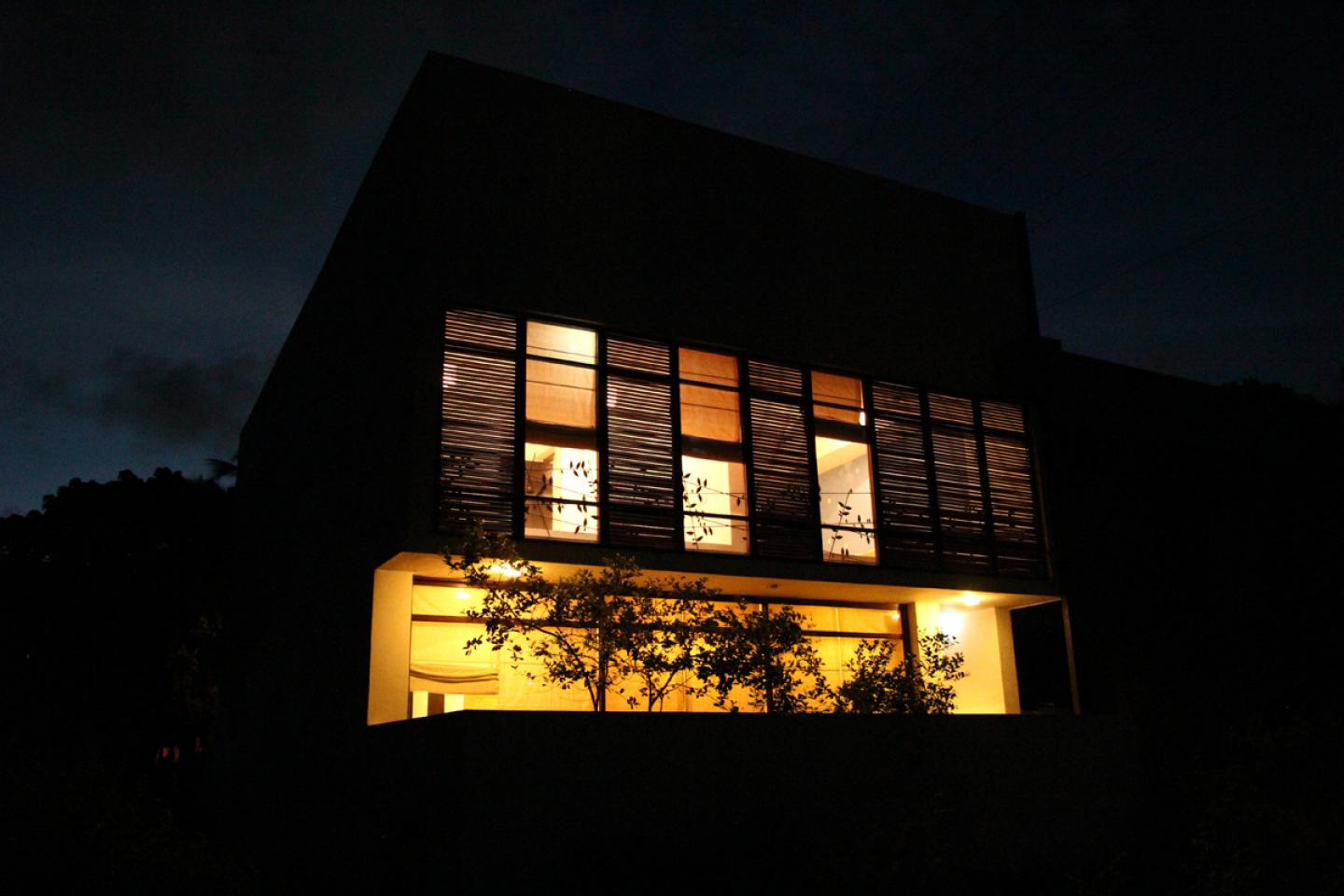 House is built on a 6.8 perch land in Humbutana,a suburb of Colombo for a young couple who are professionals. Since the site was very limited to make it spacious design as done in between the two side boundaries, opening the house to three sides. Unique details out of of many is that the doors of this house is without frames but pivoted and the wall was designed to enable the locking mechanisms.