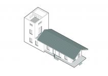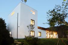 Considering the nice view toward the nature and the occasional visitors, TRU Architects proposed a family hotel-like house with an observatory. The house is composed of the L-shaped white painted concrete box and wood gable roof clad with dark-grey flat roof tiles. Under the roof, there are lounge, deck and three bed rooms which have a southern exposure and tree view. The Observatory tower has a bar/guest room and roof top deck with the beautiful distant view.