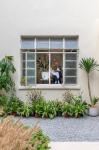 A private studio connects to the main gallery where the owner has space to work on large scale installations. The studio is connected to the garden through a large existing wrought iron window, which allows guests a glimpse of the new creations as they pass outside.