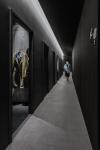 The theatre is accessed off a non-descript side-street in central Shanghai, the entrance door hidden at the back of an antique furniture emporium. Visitors arrive only with a time, location and number. From the door a stair leads down into the darkness and from there the circulation seeks to create a sense of departure from the world outside, a deliberate act of disorientation initiated by a dark curved corridor that emphasizes low-key lighting and unbalanced compositions leads to the spaces inside. The functions are organized into a linear arrangement of spaces, where the visitor is prevented from going backwards, as if following an unknown figure through the street at night.