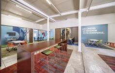 The area is divided in two spaces: the first one is for the students to meet with their teachers for work review, grades or lessons. In the second one the teachers have an individual space to work in no assigned spots and with several support areas such as coffee, printing and filing stations. Meeting rooms, phone booths and collaborative areas complete the space in the area where students are allowed.