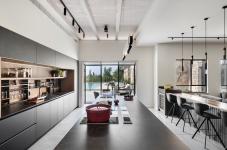 This 500 sqm property is located on a 2.5-acre estate in a village in central Israel and is surrounded by an additional five acres of farmland. This L-shaped one-story house took two years to complete and is divided into three sections. The central section includes the communal family spaces and branches out into two additional separate annexes: one containing the parents master-suite and the other, an annex composed of three independently accessed living units for each of the three children.
