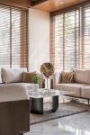 Upon entry to the house, the double-heighted entry foyer gives an iconic identity to stand out from the surrounding houses. One experiences the volumetric difference of double height to single height while entering the home. The elements like wooden blinds are purposefully placed in the Common Area to maintain the privacy of the user and get a dramatic effect of light throughout the day. The Puja area is made double heighted to give a grandeur look. The double-heighted Lounge Area on the first floor gives a “wow factor” to the space. A user can connect with the upper as well as lower levels at the same moment. A minimalist bedroom with a camouflaged door and garden balcony is an exemplary element of the house. The multipurpose room on the second floor is treated as a leisure space which is highlighted with seamless wooden flooring that creates a warm ambiance.