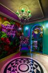 The whole space is a unique blend of contemporary and traditional elements with the use of some eye catchy bright colors with mirrors all around to look upon to. Each element being detailed with a very unique approach makes a place a must visit