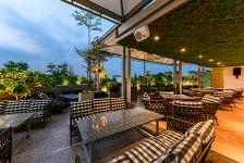 Coming to the roof top which is an element of surprise when you go through a narrow stair which opens to the beautiful open space. The cool fresh breeze which flows in the open area makes the plantations dance and makes the place livelier. The exposed brick wall with arches adds to the rawness of the interiors and acts as a beautiful backdrop for pictures. The roof top ceiling has fiber optical lights which would give you an unforgettable experience of sitting under the sky in a starry night even after sitting under a roof.
