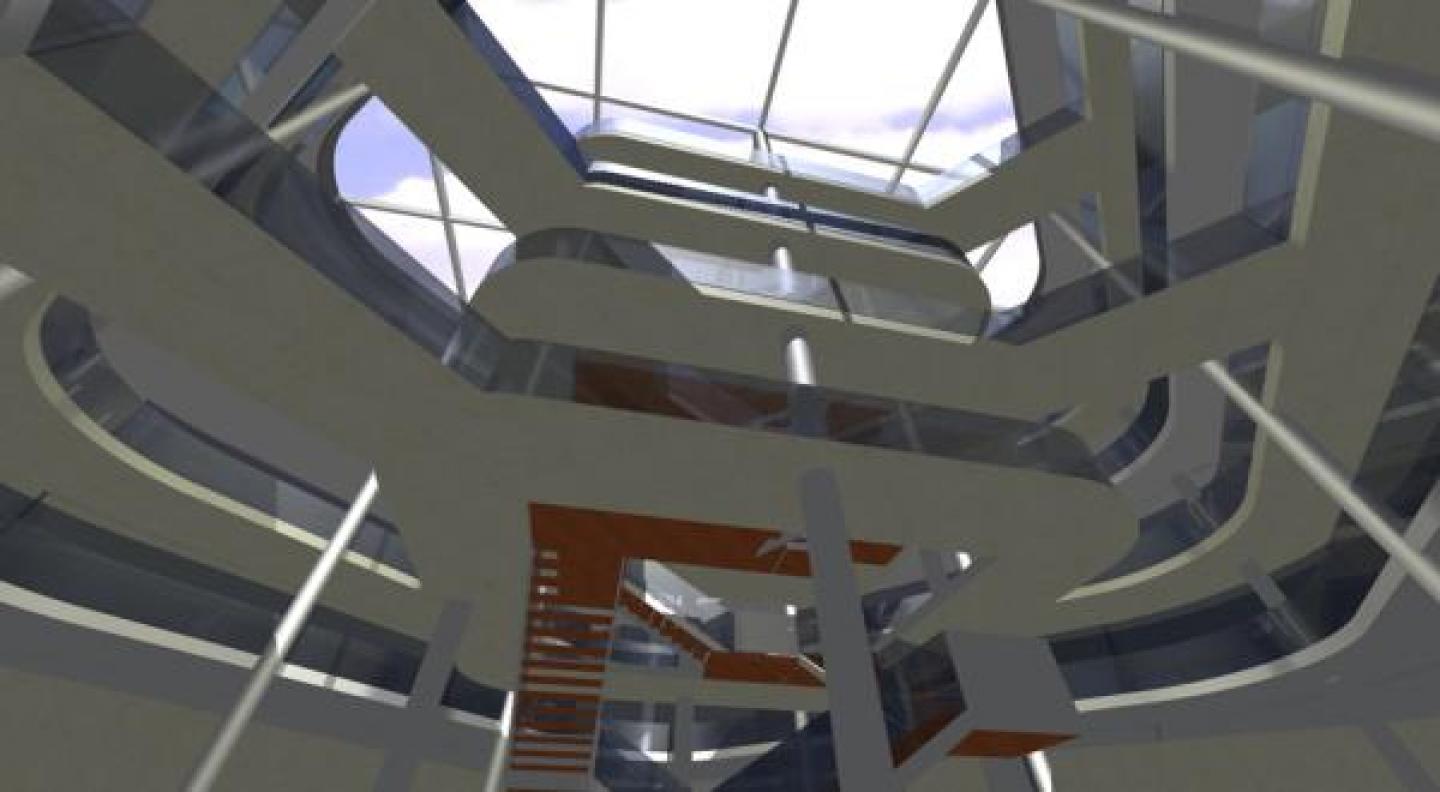 The town of Erbil lies northeast of Baghdad, close to Sulimanya, Kerkuk and Dohuk. Repressed for at least 2 decades the Kurdish region is finally enjoying peace and increasing prosperity. As part of a new wave of civil projects our group was hired by the government in 2004/2005 to produce designs and working drawings, and provide construction administration for the New Kurdistan National Library, and two other major projects. The central atrium is the heart of the library, a vibrant social area for encounters. The maon stairwell and its criss-crossing bridges shade the ground floor from the hot Iraqi sun, creating an oasis. Large multifunction halls and an auditorium are nestled on the fourth floor, which leads to a garden-like roof terrace. After six months of on-site planning {up to furniture fit-out} it was kindly suggested we leave the country, for our safety. The region fluctuates between peace and turmoil to this day...