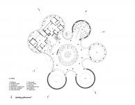 The architecture becomes unity of positive and negative spaces. Like a snow-crystal structure that can be read as a pattern in its presence or absence of matter. The landscape areas, entering the sides of the building, become part of the whole rhythmical dialogue of the exhibition spaces, bringing light to the interior space.