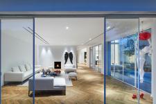 Upon entry to the property, a large dining area is revealed. A symbolic look that reflects the owners love of entertaining. An unusually large 4m long black brass table was positioned in the center of the dining area, which is located between the kitchen and the swimming pool, creating an inviting and pleasant dining experience.