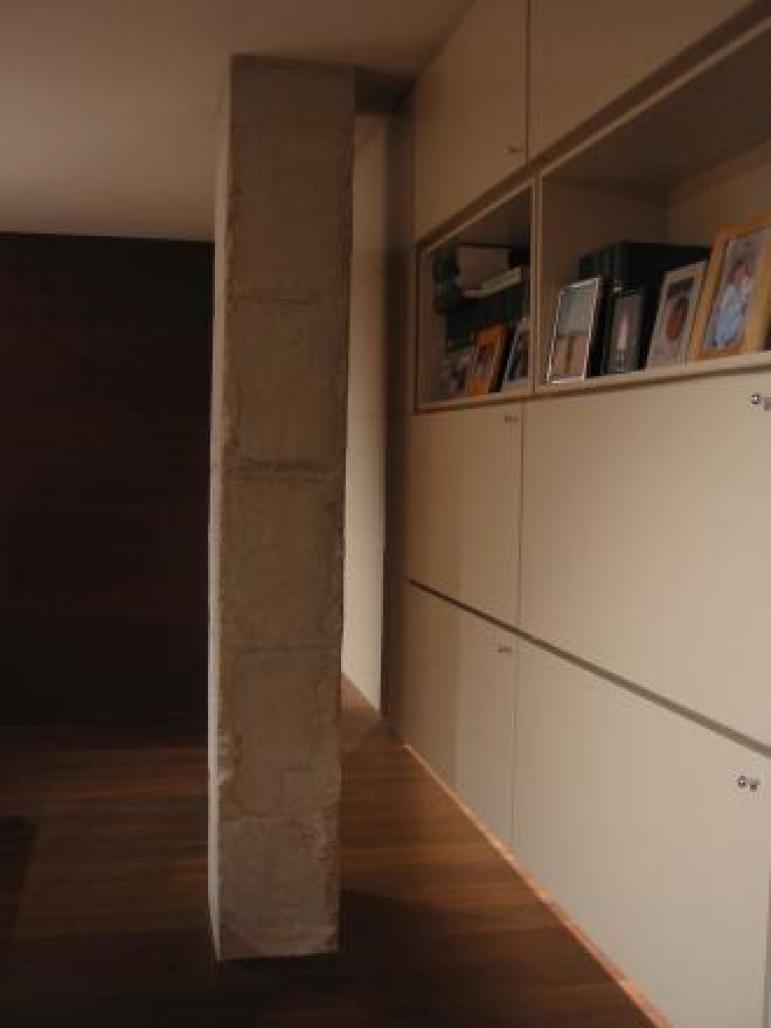 My little appartment, a floating cupboard divide two spaces, the living bedroom, and the living. Its surfacing are similar, one for me and one for the other. We have the possibility by closing a false door to create two independent appartments.