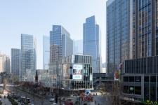 The podium design deviates from a conventional retail layout – forgoing enclosed pockets and 12-hour operations in favor of a dynamic entertainment arena, unencumbered by spatial and time constraints. The retreating podiums parallel the rows of winding hills and blend with the greenspace to blur the boundary between indoors and outdoors. A meticulously planned horizontal and vertical layout enhances pedestrian accessibility.