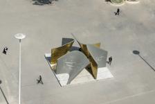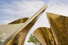 The outer face of the shells is dark in color and represents pollution and everyday life that corrodes the human spirit. The inner surface of the plates, which is near water (a symbol of purity in Iranian culture and art), and has been removed from that rust, is made of a polished mirror, and is an expression of the essence of human existence, of peace and tranquility.