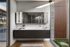 It possesses an abundance of tension between its interior and exterior while making extensive use of authentic materials, of whom concrete is undoubtedly the star of the show. The 'wow' factor, as described by architect Dan Israelevitz, 'reveals itself once you enter the home where you experience a sense of quiet and immense admiration. The property communicates and is a home whose presence is deeply felt. The house was built, planned, and designed by Dan and Hila Israelevitz.