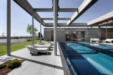 The architecture perfectly embodies the interior and outside spaces as one, with a roof of floating concrete and steel pillars that fortify the structure. The same roof structure is part of both the interior and exterior, with overlaying glass built between the concrete beams.
