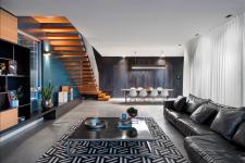 The open space has a good flow to it and its various areas blend in harmony, such as the blue sofa in the family area that ‘overspills’ slightly into the kitchen area, allowing for optimal interaction between the family members at any given point.