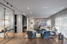 The house size is relatively pampering for a couple, but it was a challenging change for people who lived in a large house, and our goal was to ease this feeling. At the beginning of the project, Tzvia Kazayoff and her team sat down with the clients and had a conversation about the things that are important to them for the future dream house. They requested that the living room and kitchen continue to be as large as in a private home, a comfortable and indulging guest room for the children who come to visit, a comfortable utility room that is not visible to the eye, a study room, and a bedroom which serves as an island of peace for the couple.