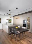 The design challenge was the shape and division of the existing apartment and its solution. The challenge was to connect all the parts of the symmetrical rectangular house so that all the parts of the house communicate with each other as a central space and speak the same material language while fulfilling all the customer's needs.