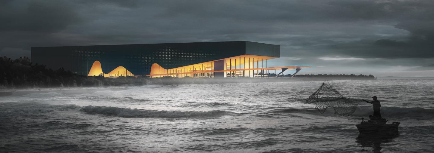 With many architectural plans offered, the architectural plan with the concept of "architecture is the connection that creates the harmony between land and sea" was chosen. The plan shows the characteristics of the land context as well as the story of climate change with humanity. The shape of the building is formed by the harmony of 3 elements of land-sea - architecture. The work demonstrates the relationship between the forest and the sea as well as the relationship between people and nature, especially in the context of human life in the face of climate change and sea level rise.
