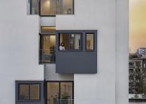 The interior layouts of the building reveal a deep structural and volumetric connection to the façade; a vocabulary that is used throughout the project. The juxtaposed volumes of the void offer playfulness through shifting perspectives and views, allowing the interior and exterior boundaries to be experience simultaneously. The Hide-and-seek between inside and outside takes place through the interplay of solid and void, challenging notions of exposure and privacy. There are two units on each floor; making noise and privacy driving forces in the positioning of a rectangular stairwell, which acts as a buffer to prevent sound and direct visual contact between the units. Each unit sits around an intimate balcony, which is perceived as an interior garden.
