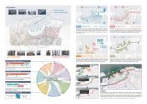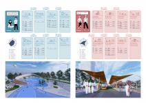 "Re-intertwine" adopts the design concept of the 15-minute city that integrates different modes of transport, including cycling, and increasing green space and public space. It takes an interesting user-oriented approach to developing multimodal solutions for every user profile, using public transportation to get to different hubs in the neighborhood.