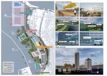 This project aims to redesign each urban block and connected it in tandem with a linea r transportation system. An intertwined approach is used to try to solve the problems of the city. The four specific zones identified—based on opportunity and potential—are characterized by different strategies and uses. They can be described as: Waterfront activities center, Cultural and Creative Center, Agricultural Trade and Food district and innovation center.Coupled with citizen participation, allow users to customize their own street activities and behaviors. We aim to provide a sustainable urban design that belongs to the local population!