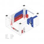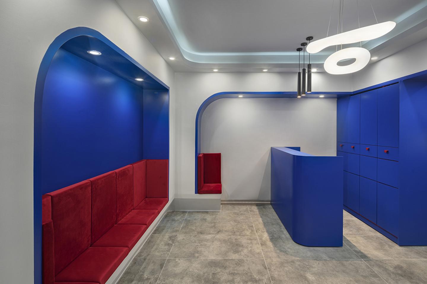 The energetic color palette of the design includes blue and red colors along with the neutral combination of gray with the appropriate amount of brightness spread in all spaces. The color palette was used according to the level of brightness and according to the application of each color to bring us to the desired characteristics. The gray walls with the blue skin on them, along with the seating points and the part of the form marked with red, not only make the living space dynamic, but with this companionship in the form, it also refers to the static. The play of colors in the rooms. It was extended and covered all the furniture. To put the user in a different treatment environment than what he had experienced.