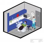 The doors of the rooms were chosen and implemented without form to maintain integrity. One of the rooms was the master, which was turned into a doctor's examination room by installing Vionite dental equipment along with the work space. The other room formed the main treatment space with the addition of dental equipment and units and having more closets.