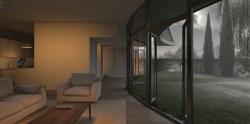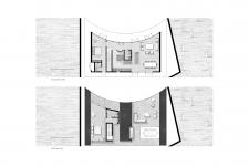 From the exterior perspective, the concavity is the point of attraction for the audience, while the inside panoramic view centers the spaces around the garden;