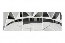 So the two identical, extended triangles that these spaces are underneath resembled two houses leaning on each other.