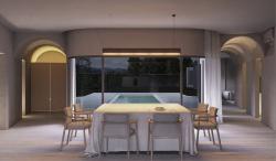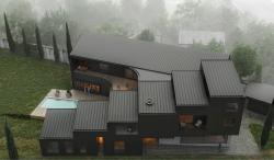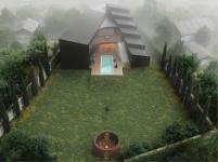 2- In the first place, spatial contents of trapezoidal geometry, with the help of a triangular form has been transformed to two square cubes. Which by virtue of this, the entire process of Design- Construction gets organized. and the next step, the core as roofed deck (Eyvan) is placed in Symmetry of the main backyard garden`s view and between two cubes.