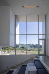 Supporting facilities and reception space on the first basement floor are linked with the cafe on the first floor by stands which have a void on the top, which are designed to complement functions of the hospitality space such as reception and café. A public swimming pool, a performance hall, and a common yard in the outside space of the cafe on the first floor are designed to provide convenience for both hotel guests and cafe users. A swimming pool only for hotel guests on the roof of the main building will provide a place to enjoy the seasonal changes of Mt. Naejang.