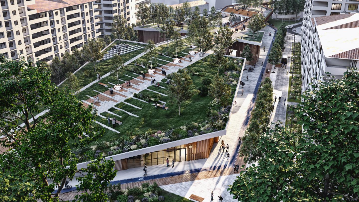 Transportation System and Accessibility: Within the project’s scope, a design strategy has been adopted that provides an uninterrupted pedestrian connection between Kurtulus Park and Abdi Ipekci Park both from the ground level and from the upper level consisting of the elevated pedestrian platform and the green roof of the marketplace. An integrated public space was designed, including the memorial and the green roof, and the transportation system was facilitated by supporting it with alternative systems like bicycle and scooter.