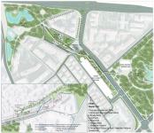 Green System: The holistic green system was proposed on the city scale to restore the connections between the isolated green areas. The green continuity between the two parks is ensured both at the ground level by preserving the existing natural values and at the upper level by using the walkable green roof and pedestrian platform while providing pedestrians with an uninterrupted green experience between these two parks.